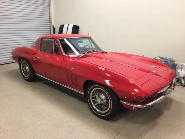 This 1957 Corvette (owned by Ed and Karen Winkler) is in the shop for some brake work.